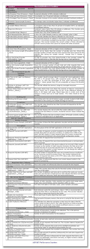 The table of counters provided here provides a possible list of counters that can be monitored for while Load Testing an ASP.NET application. However, it needs to be tailored for specific requirements. For example, while testing a application that uses ADAM process one would be interested to know the processor and memory utilization by the ADAM worker process (dsamain) in specific. It is advised to use the minimum number of high level counters for the first round analysis. Based on the first level analysis one can added more detailed and specific counters for the areas that warrant performance and remove few counters related to areas where the performance seems be good.